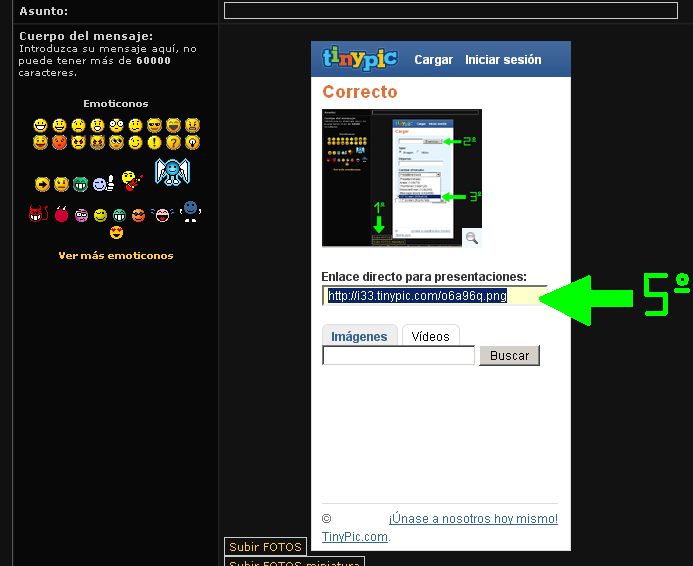 mensaje, copiamos la URL copiada en el paso 5º (indicado en fig. 4 ).
